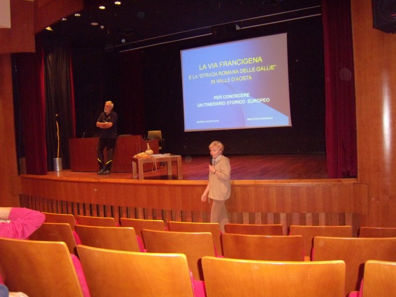 Liliana Junod presenta la serata francigena nell’Auditorium di Morgex(Foto di E. Fiorentini)